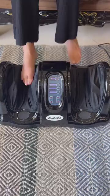 Place your feet on the massager, turn on the device, and select your preferred mode and intensity.