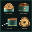 • Ultrasonic mist spray for efficient humidification